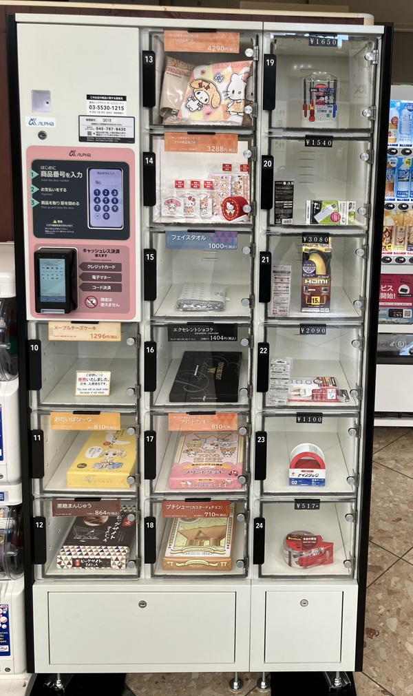 サービスコーナー横にロッカー型自販機を設置いたしました。 お土産品や設営時に必要な備品など、営業時間帯を気にせずお買い求め頂けます。 是非ご利用ください。 ※キャッシュレス決済のみ対応しております。 ※共通食事券のご利用はできません。 ※販売商品は変わる場合がございます。